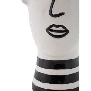 Vaso in porcellana bianca raffigurante un volto. Il deciso tratto nero richiama l’arte futurista e cubista.