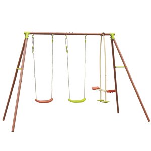 L’Altalena per bambini 4 posti in Acciaio cm 153x269x195 – MASHA è il complemento ideale per arricchire giardini e spazi gioco all’aperto con uno stile allegro e funzionale. Realizzata in robusto acciaio con tubi da Ø 50/25 mm, questa altalena multicolor unisce resistenza e sicurezza con un design vivace e moderno, pensato per stimolare il divertimento in piena libertà. I suoi quattro posti, tra cui due classiche altalene a seduta flessibile e un’altalena doppia con schienali e poggiapiedi, offrono un’esperienza condivisa, perfetta per i giochi di gruppo. Le finiture in verde lime e arancione conferiscono un tocco fresco e dinamico che si integra perfettamente in ambienti outdoor, parchi giochi o cortili scolastici. Il design essenziale e accattivante della struttura MASHA valorizza ogni spazio ludico, garantendo ore di gioco spensierato in totale sicurezza. Pensata per resistere agli agenti atmosferici, questa altalena si distingue per l’equilibrio tra robustezza e praticità, rendendola la scelta perfetta per accompagnare i momenti più gioiosi dell’infanzia all’aperto.