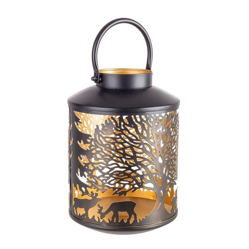 Lanterna Daya Bombata con Renna Nero Diametro 20x28cm (2 Pezzi)