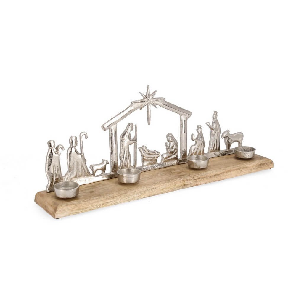 Portacandela 4 pezzi Kristeen natività naturale-alluminio