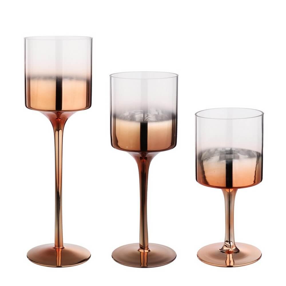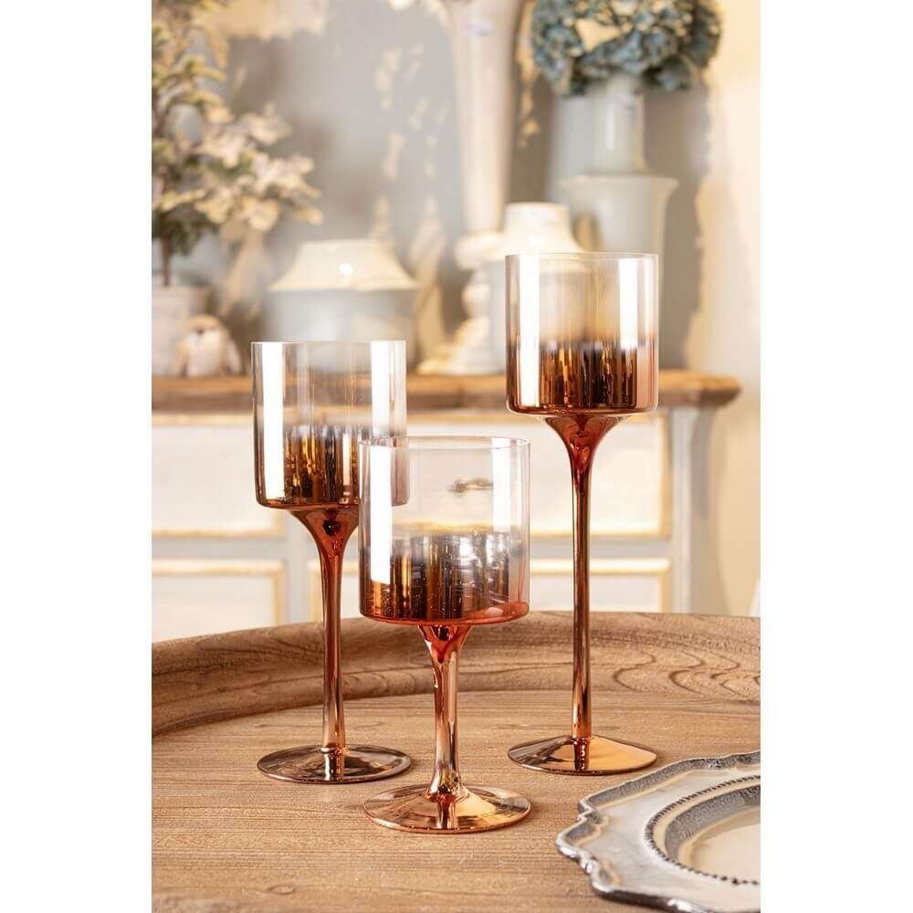 Set di 3 portacandele 1 pezzo Amanda calice oro rosa