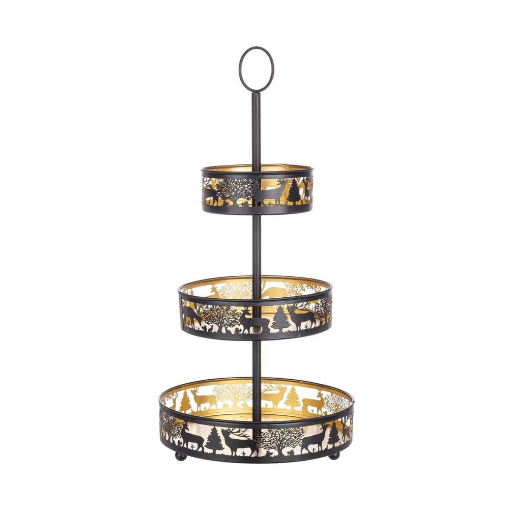 Alzatina a 3 Piani Whitley Nero e Oro (2 Pezzi)